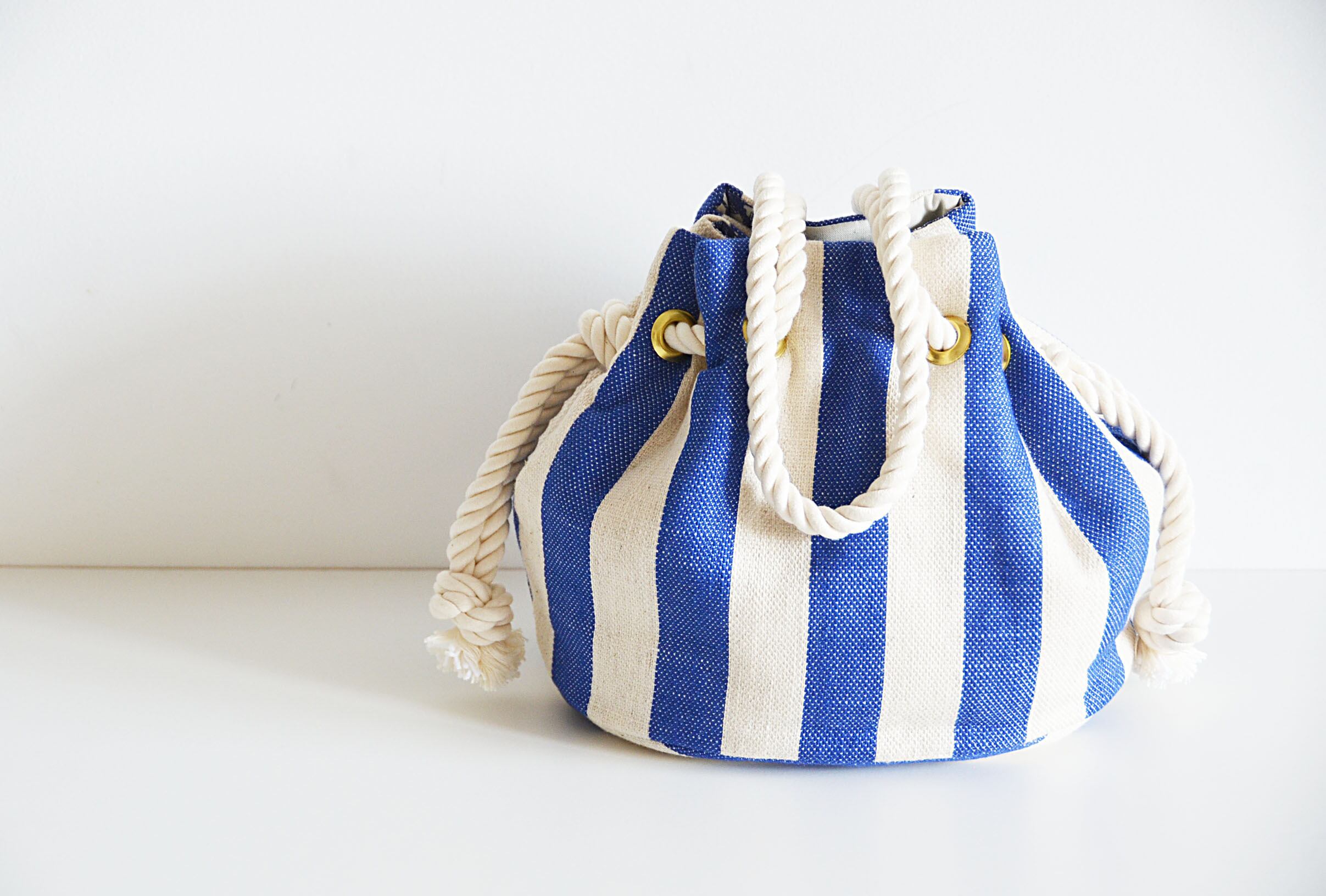 マリンバッグです。さらりとあわせたりワントーンのコーデのアクセントに使ったりといつでもどこへでもおでかけにお持ちいただける万能ばっぐです。