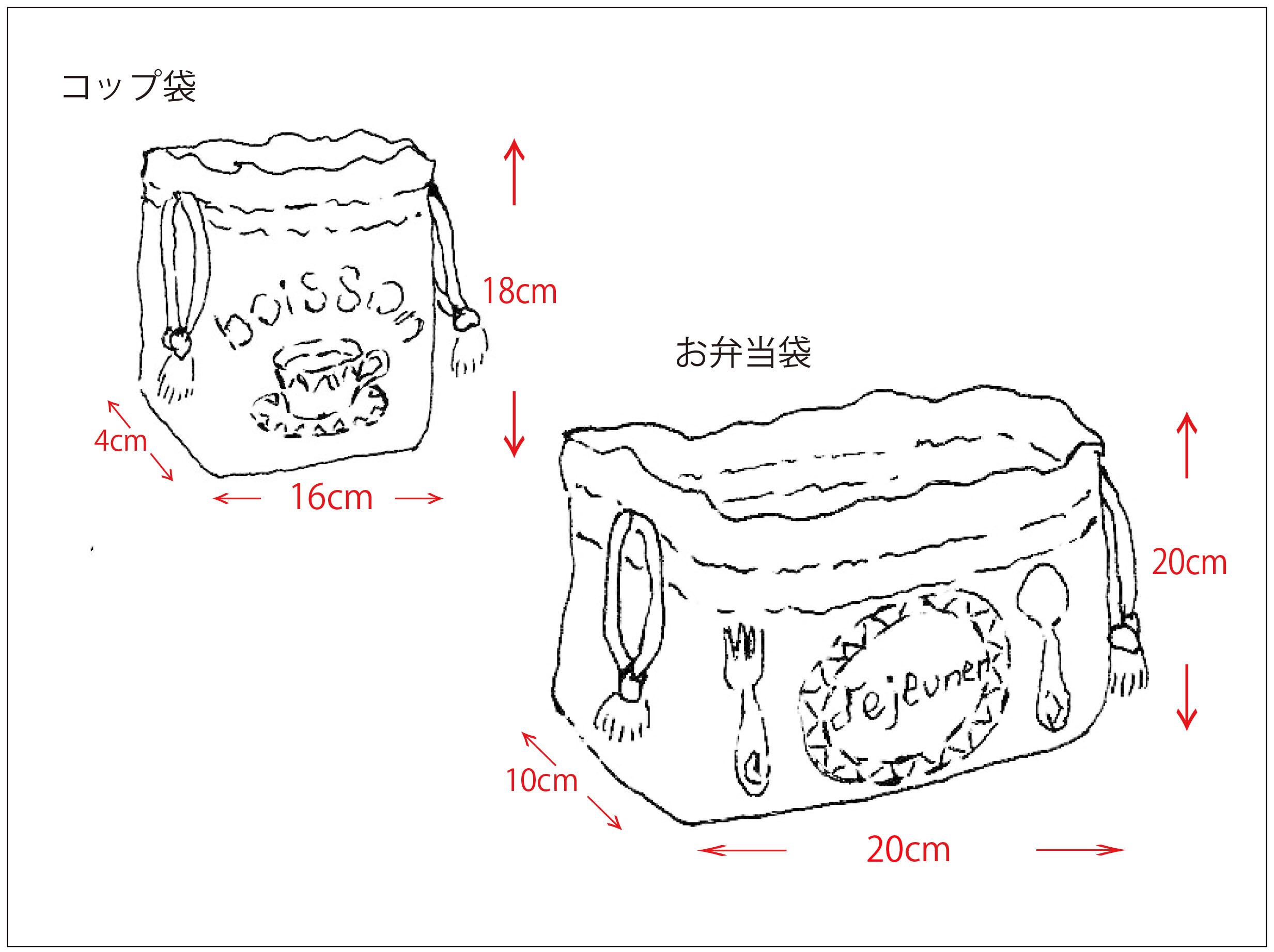 ランチ袋にはフランス語でお昼ごはんを意味する「déjeuner」の文字を