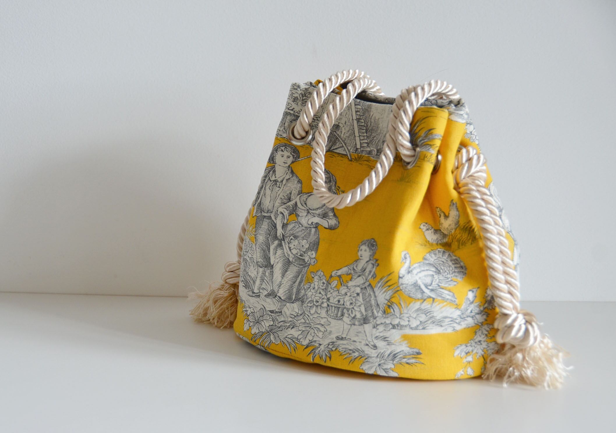 バッグ本体外面:トワルドジュイ生地(コットン)
